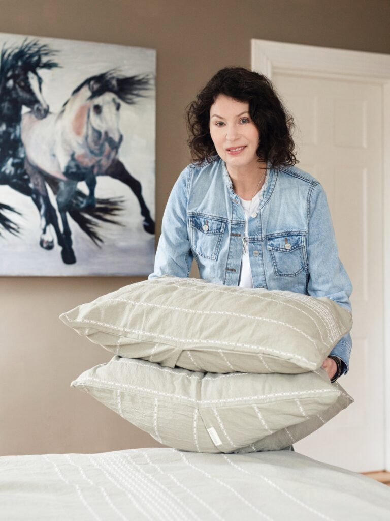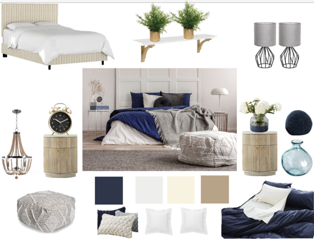 “My husband and I were keen to give our bedroom a make-over. During the pandemic, our son had to use the study for homeschooling, and our bedroom often became the ‘extra office’ rather than a room to sleep and relax in. After a busy period, I noticed that it was impacting my sleep so I was keen to reclaim ithe room as bedroom. We worked with Dorien previously and knew that Dorien shared our passion for sustainable homes. We have loved working with her again! Rather than getting lost in the myriad of choices and ending up with things that just aren’t exactly right if we would have done this ourselves, Dorien created two beautiful mood boards for us. We then revised before we received our final beautiful design and detailed shopping list. We love our new bedroom space – beach feel without the staple decoration of anchors. Thank you so much Dorien!”